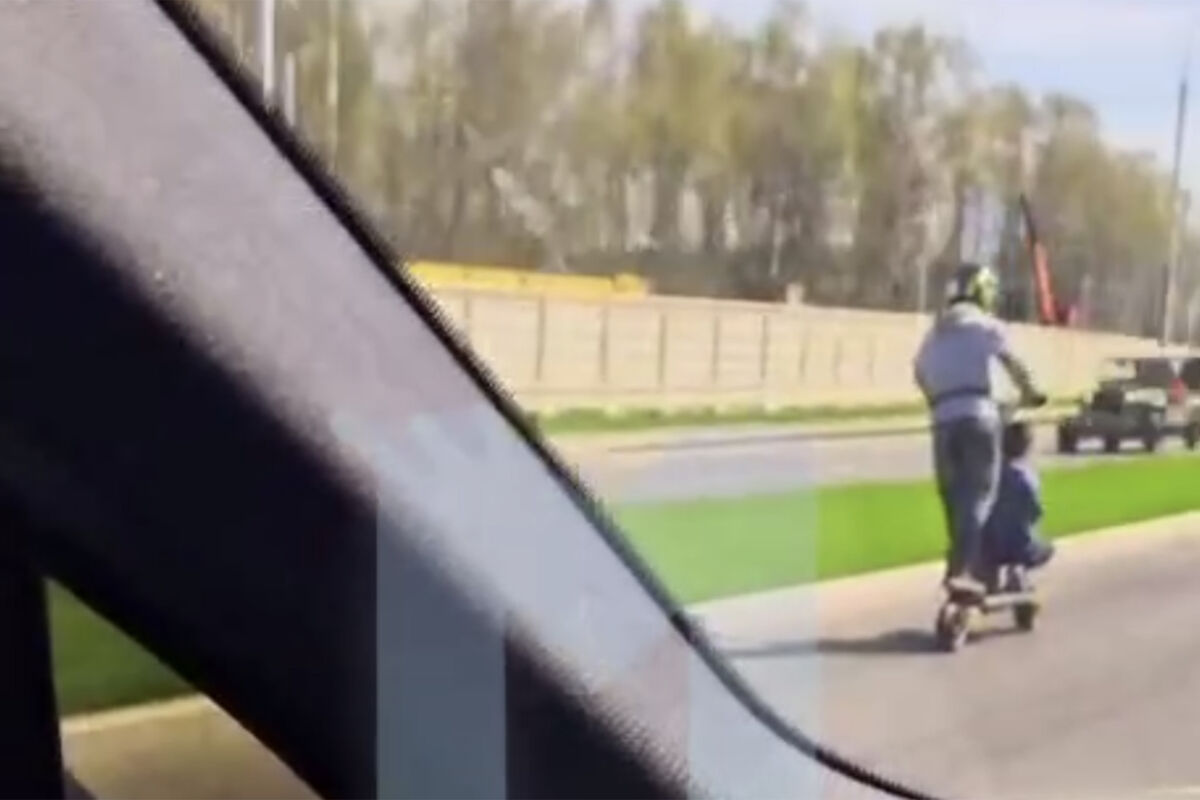 Очевидцы запечатлели инцидент на видео. На кадрах видно, как два школьника едут на одном самокате, при этом один из нарушителей сидит на корточках. На записи также видно, что они едут в потоке автомобилей на большой скорости.