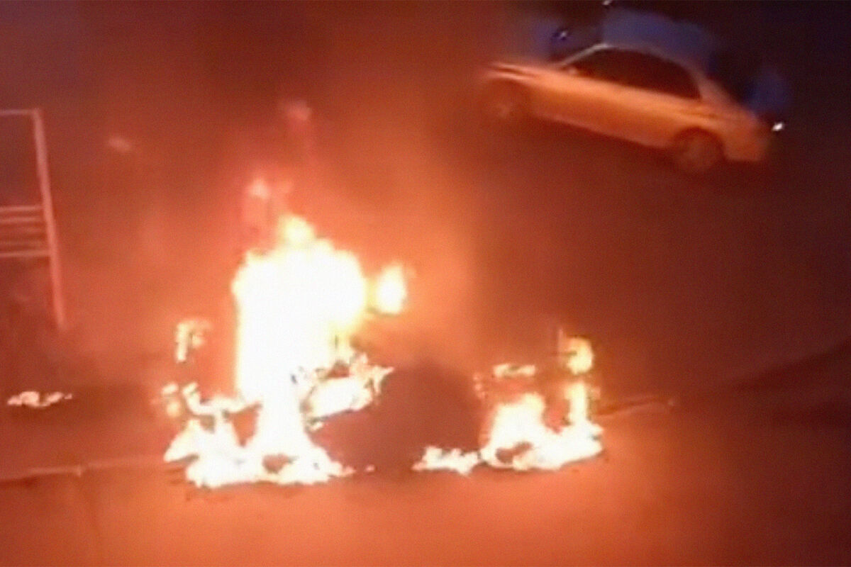 Автомобиль вспыхнул и был полностью уничтожен огнем. По стечению обстоятельств, у машины накануне прохудился бензобак и топливо вытекло на асфальт. При этом автовладелец запомнил внешность поджигателя и смог его описать, 22-летнего злоумышленника задержали полицейские. Ему предъявлено обвинение в умышленном уничтожении чужого имущества.