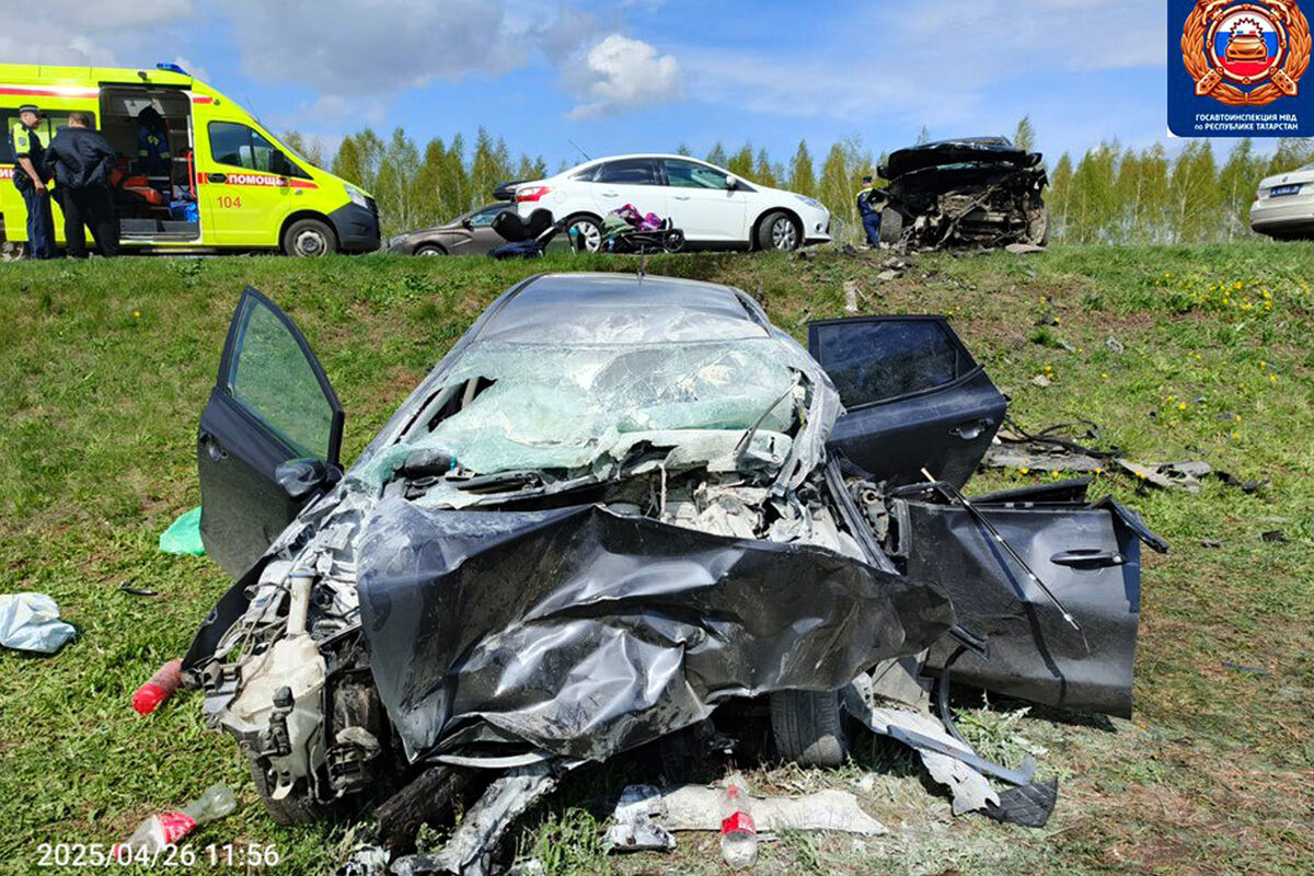 Под Казанью Kia с младенцем салоне загорелась после лобового тарана