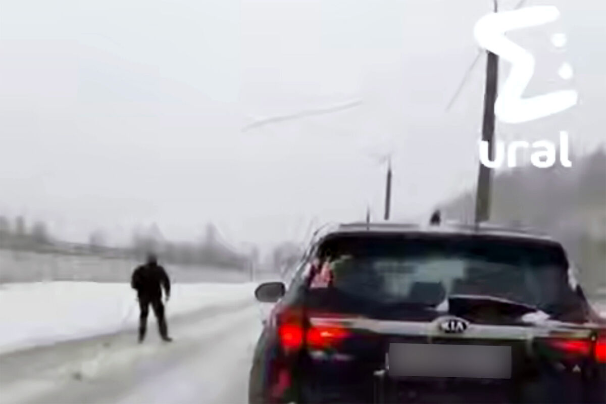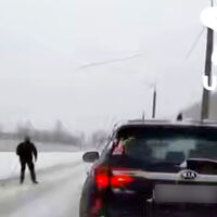 Очевидцы запечатлели инцидент на видео. На кадрах видно, как мужчина едет на лыжах по проезжей части рядом с автомобилями.