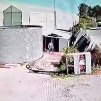 Уличная камера запечатлела инцидент на видео. На кадрах видно, как автобус выезжает на обочину дороги, падает в кювет и переворачивается.