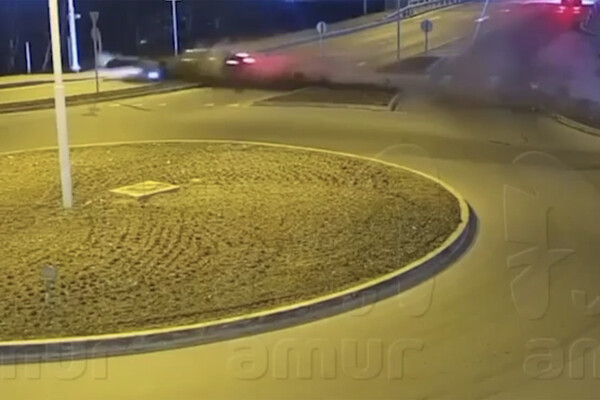 «Хонда» на большой скорости подлетала к кольцу Ленина-Украинская. Увидев людей в форме, вероятно, водитель слегка перенервничал и нажал на педаль. Результат — на видео. Эффектный форсаж со сносом дорожных знаков и впечатывание в столб», — говорится в сообщении.