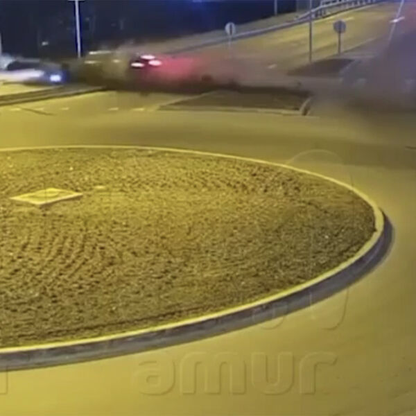 На видео попало, как сахалинец испугался гаишников и протаранил дорожные знаки