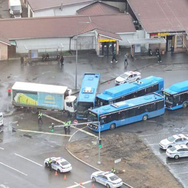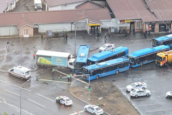 В Москве водитель большегруза умер за рулем и врезался в автобусы