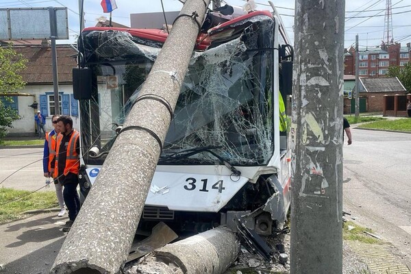 На Кубани в ДТП с троллейбусом, врезавшимся в столб, пострадали четыре человека