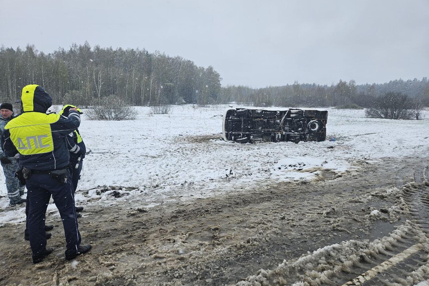 «Водитель <…> автобуса <…> не справился с управлением и выехал за пределы дороги. Автобус опрокинулся», — рассказали в ведомстве.