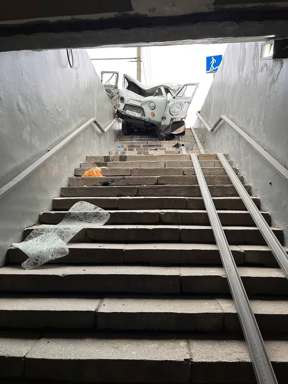 В Волгограде катафалк УАЗ влетел в подземный переход, сообщает Telegram-канал «112».