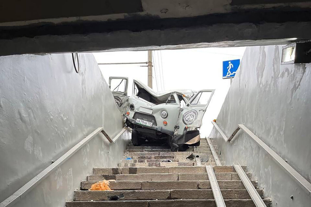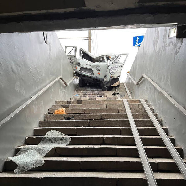 В Волгограде катафалк УАЗ влетел в подземный переход, сообщает Telegram-канал «112».