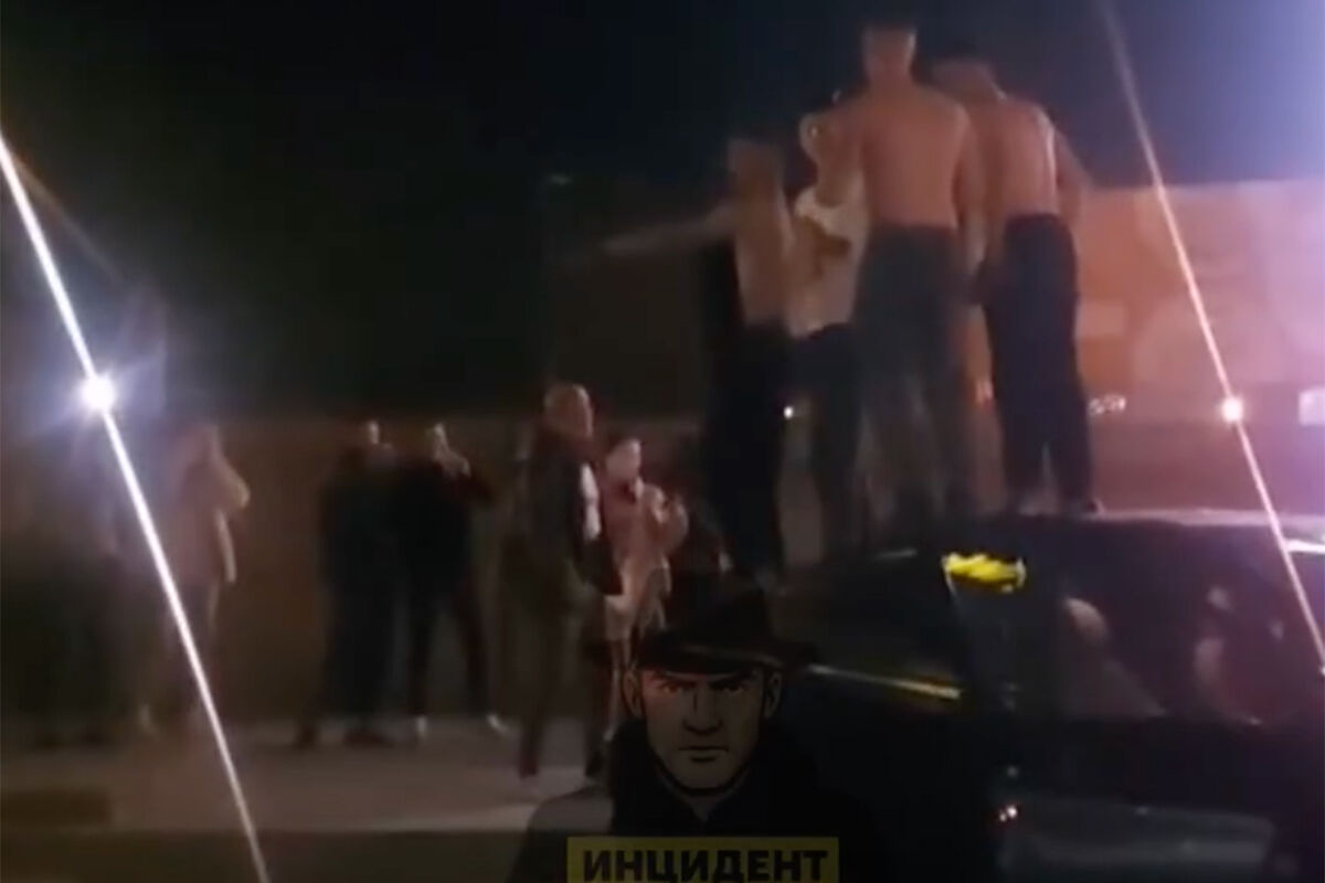 Очевидцы запечатлели инцидент на видео. На кадрах видно, как несколько мужчин танцуют на крыше черного автомобиля. При этом на записи видно, что нарушители танцуют с голым торсом.