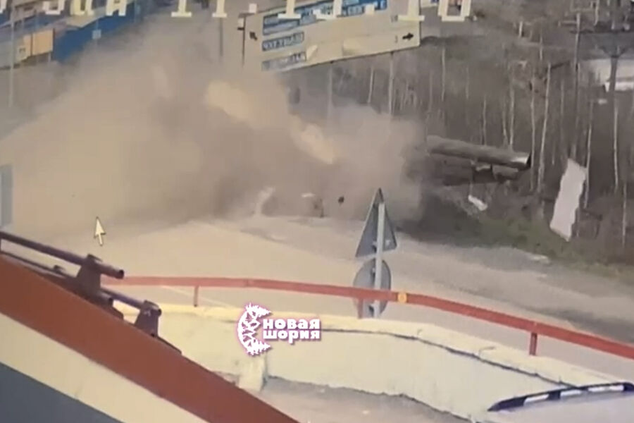 Уличная камера запечатлела инцидент на видео. На кадрах видно, как грузовик врезается в проезжающий автомобиль, а после – падает в кювет. В результате столкновения начинает идти дым.