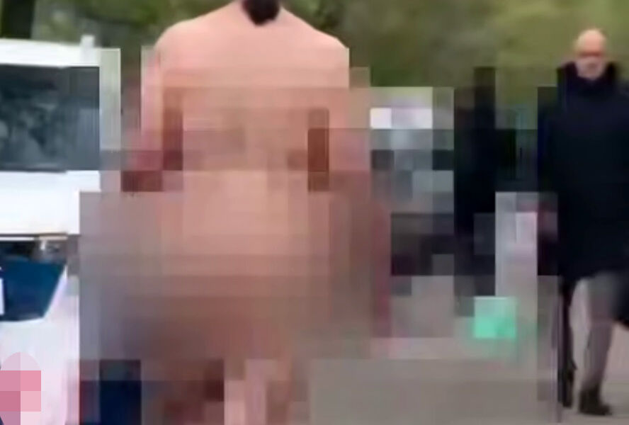 Водители сняли москвичку на видео. На кадрах видно, как полностью голая москвичка с пакетами в руках идет по проезжей части.