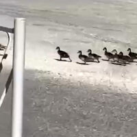 Очевидцы запечатлели инцидент на видео. На кадрах видно, как утка с утятами переходит проезжую часть. На записи также видно, что птицы идут по дороге в необорудованном для пешеходов месте.