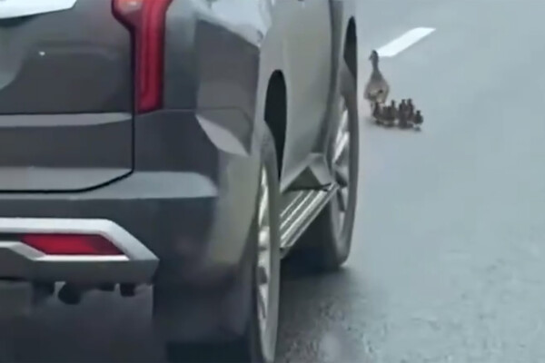 «Чуть не крякнула»: в Петербурге сняли прогулку уток прямо на трассе