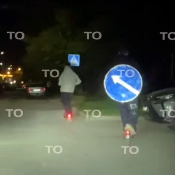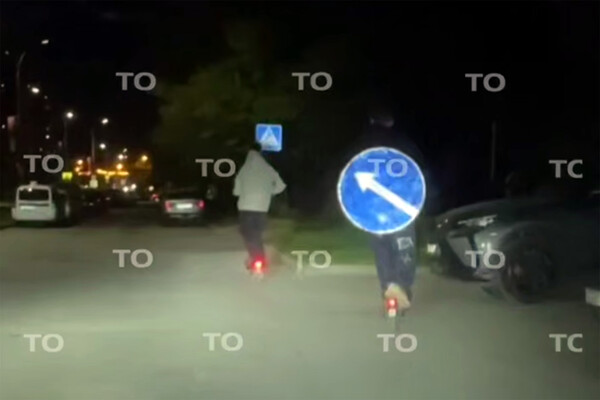 Очевидцы запечатлели инцидент на видео. На кадрах видно, как два человека едут на электросамокатах, при этом один выполняет трюки и опасные маневры на проезжей части. На записи также видно, что у нарушителя на спине зафиксирован дорожный знак.