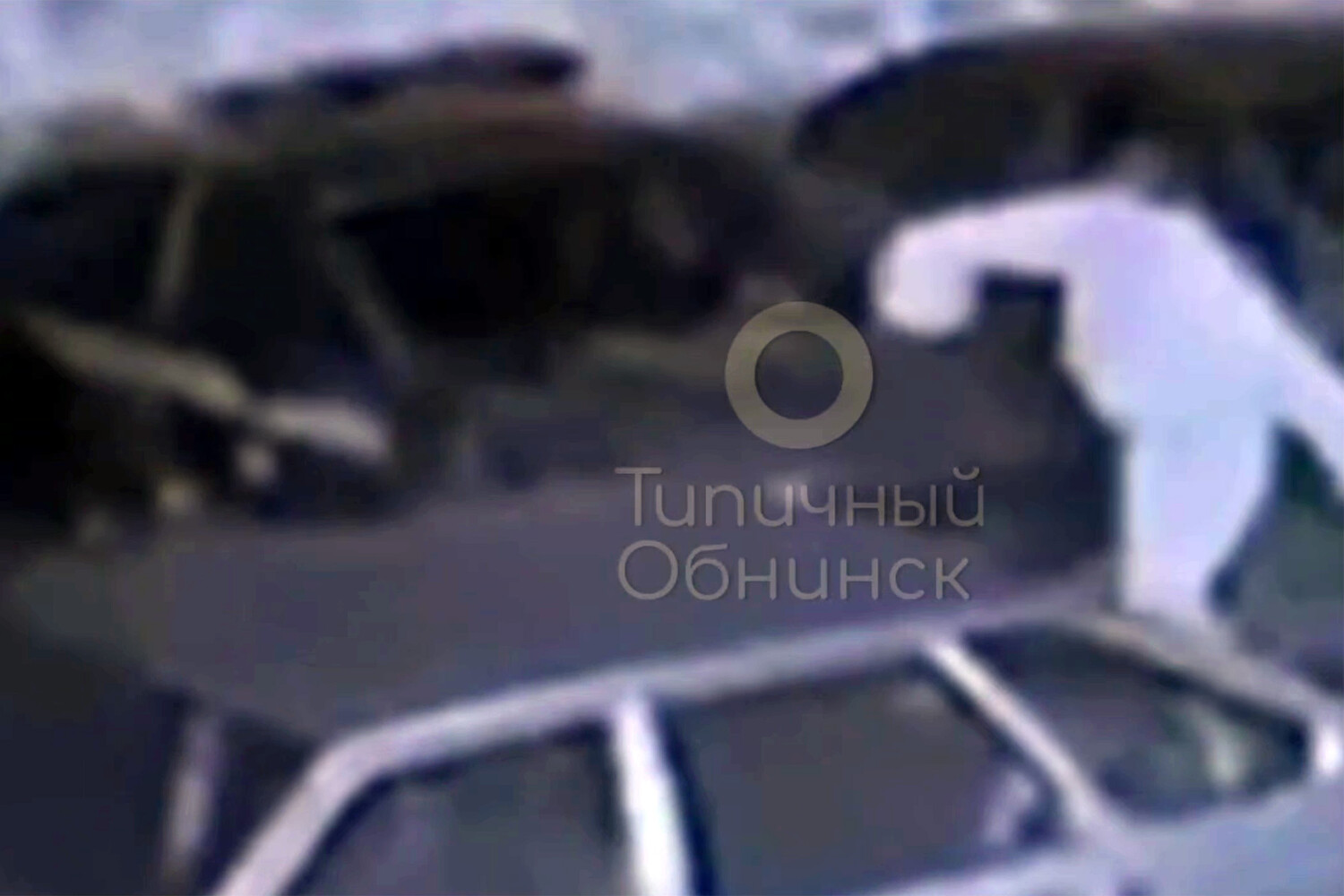 «Камеры зафиксировали дерзкий поджог автомобилей Росгвардии в Калуге», — говорится в сообщении.