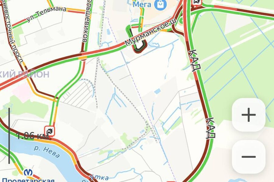 В Санкт-Петербурге на КАД образовалась длинная пробка. Об этом сообщает Telegram-канал «Питер. Афиша».