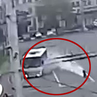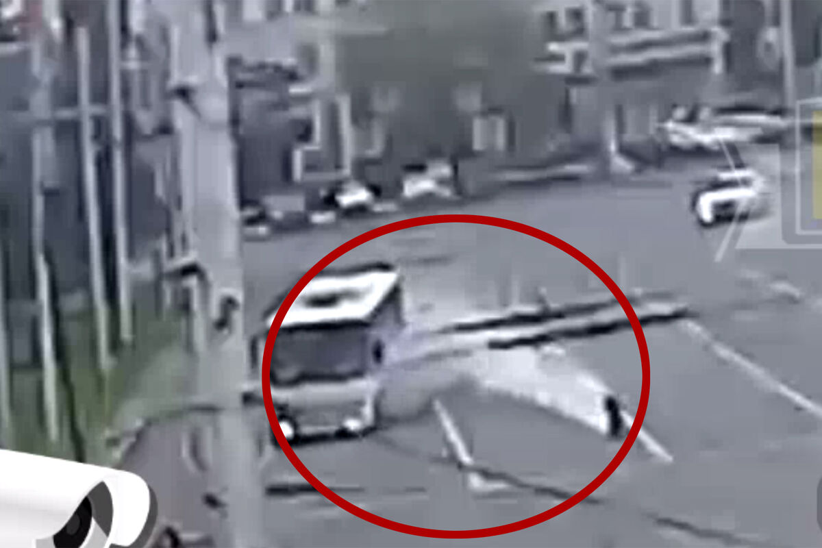 На кадрах видно, что заднее левое колесо оторвалось от автобуса, который в этот момент перестраивался вправо. Оно покатилось под уклон, задевая попутные машины. Затем оно выкатилось на встречную полосу и врезалось в почтовый фургон УАЗ. После этого колесо остановилось. У почтового фургона в результате ДТП оторвался бампер. Также большая вмятина осталась на переднем крыле и двери кроссовера Volkswagen Tiguan.