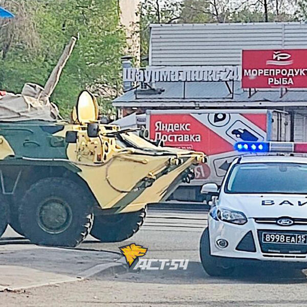 В Новосибирске произошло массовое ДТП с участием бронетранспортера. Об этом сообщает Telegram-канал «ACT-54 Black».