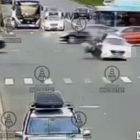 Ранее на видео попало, как в Москве курьер взлетел в воздух после наезда автомобиля.