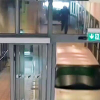 На опубликованных кадрах видно, как автомобиль заезжает в помещение, при этом сбивает двери. Далее на записи видно, как машина врезается в магазин, после чего в него заходят несколько людей в черной одежде.