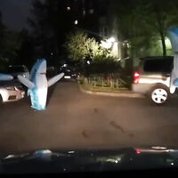 Очевидцы запечатлели инцидент на видео. На кадрах видно, как три ростовые куклы стоят на проезжей части и мешают проезду транспорта, при этом, когда автомобиль подъезжает ближе, люди в костюмах делают шаг назад и дают автомобилю возможность продолжить движение.