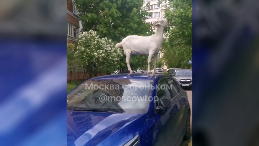 В Москве коза залезла на Kia, чтобы поесть листья с дерева, и это попало на видео
