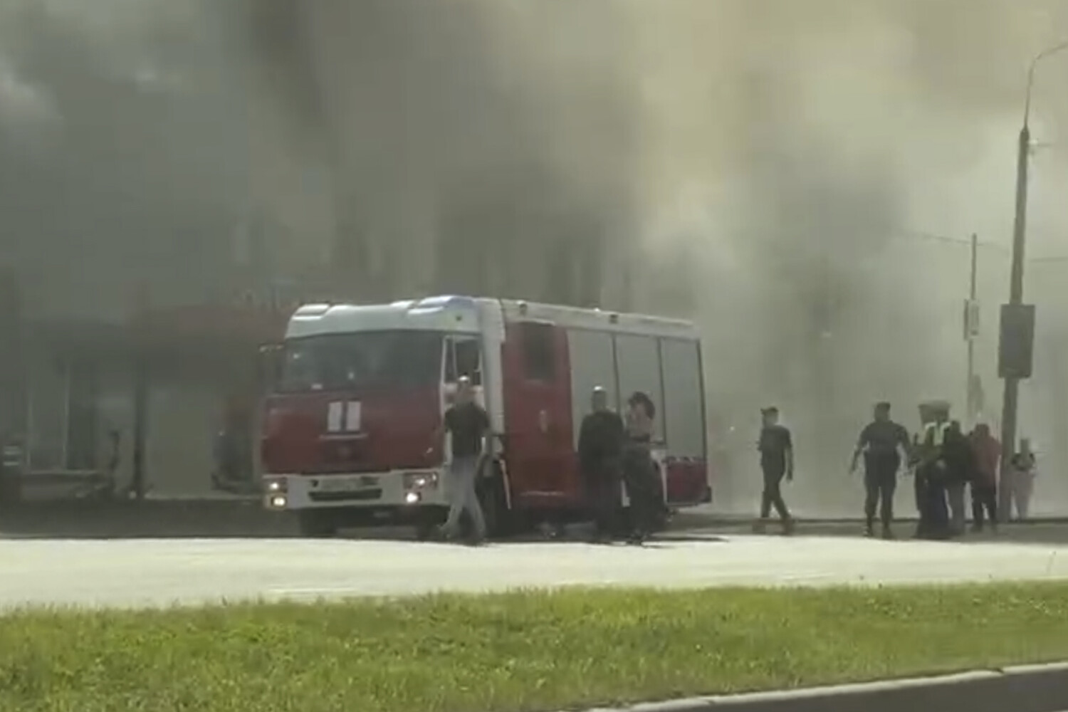 «Горит ТЦ «Пионер» на улице Дзержинского — окна с одной стороны здания уже почернели, из здания валит дым. Загорелись строительные материалы на втором этаже, огонь уже перекинулся и на третий этаж», — говорится в публикации.