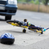 Судя по видео, удар пришелся в заднее колесо велосипеда. После того, как ребенок упал, он смог подняться.