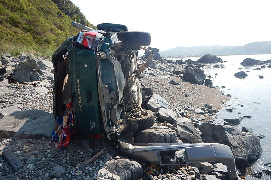 Во Владивостоке водитель на Subaru Forester упал со скалы