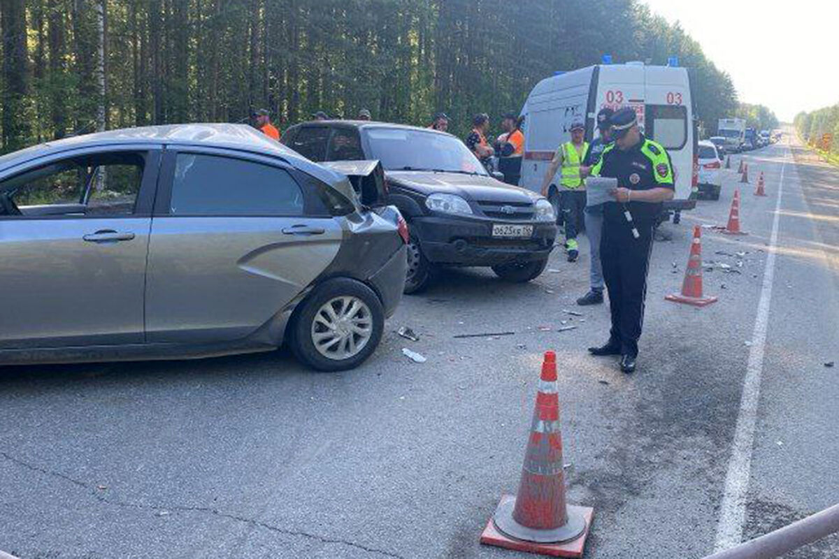 На трассе Екатеринбург — Курган произошло массовое ДТП с участием пяти автомобилей, среди которых была карета скорой помощи. Об этом сообщает ГИБДД.