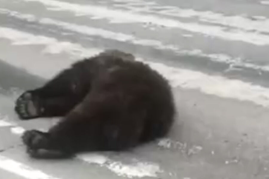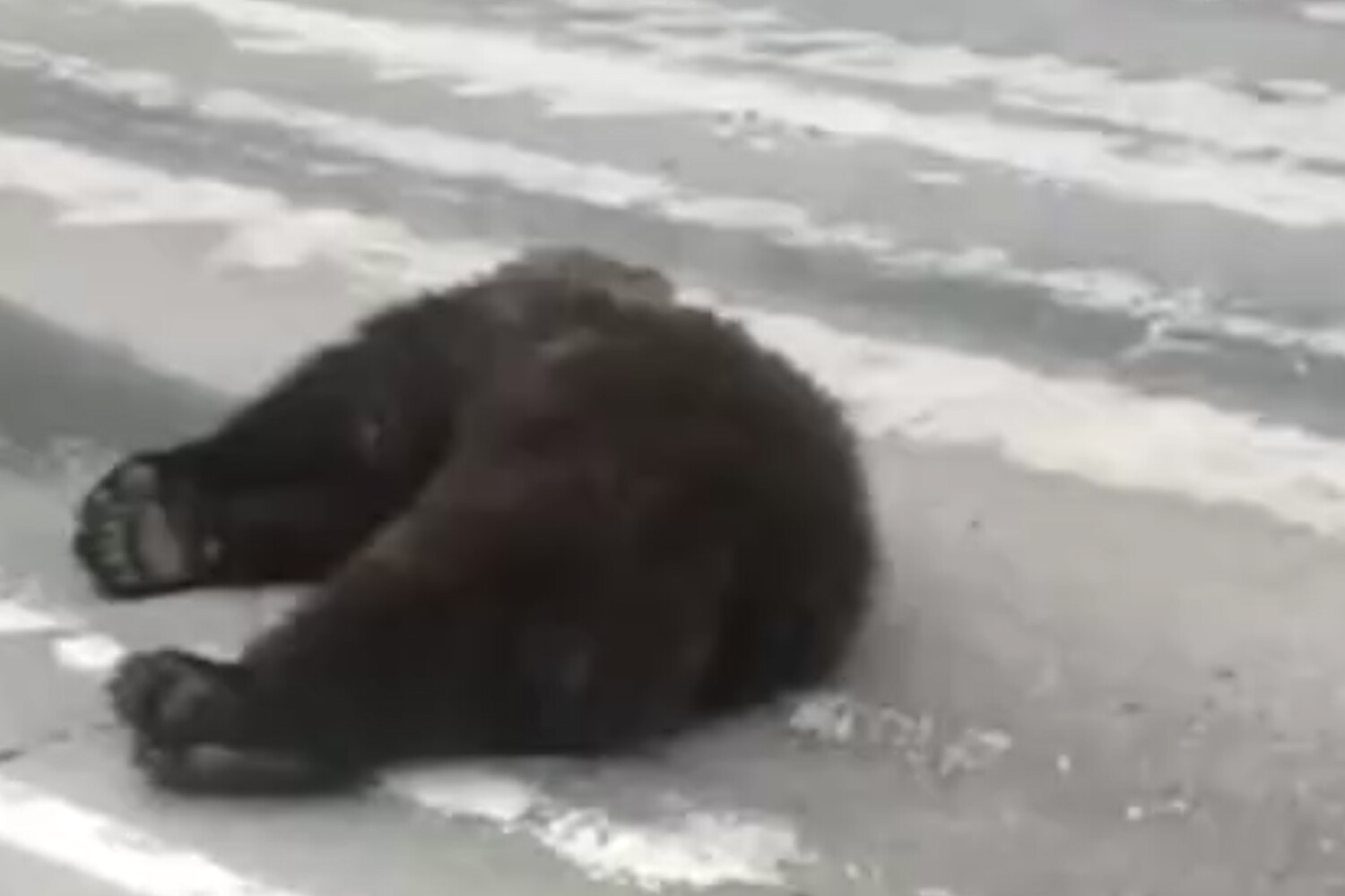 «Проезжающие мимо рабочие увидели на трассе огромного медведя в крови, лежащего без признаков жизни — вероятно, косолапого сбил автомобиль. Мужчины остановились, несколько человек решили подойти поближе, посмотреть на зверя и снять видео. В итоге, когда люди были уже в паре метров, мишка вдруг «ожил»», — говорится в публикации.