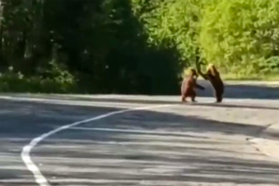 «В Башкирии медвежата устроили боксерский бой на дороге. Битва на кулаках произошла на трассе около деревни Кузъелга около города Межгорье», — говорится в сообщении.