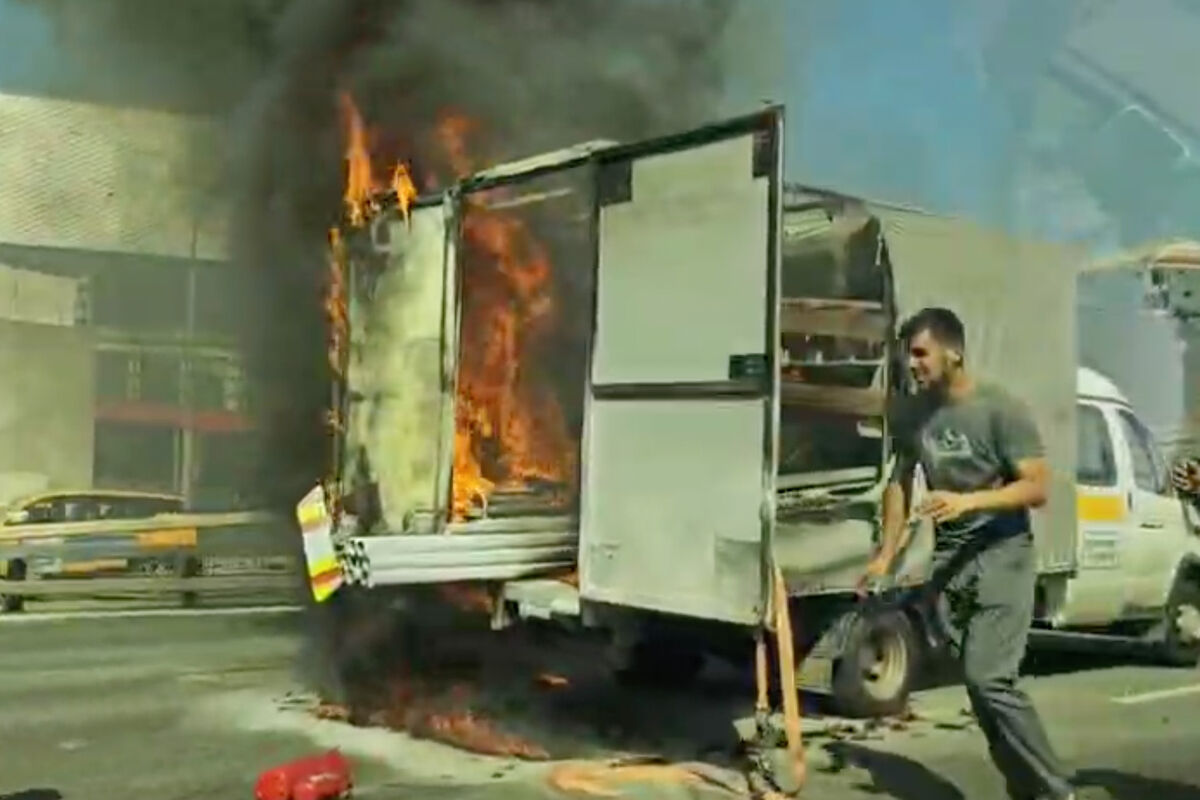 Очевидцы запечатлели инцидент на видео. На кадрах видно, как «Газель» горит на проезжей части.