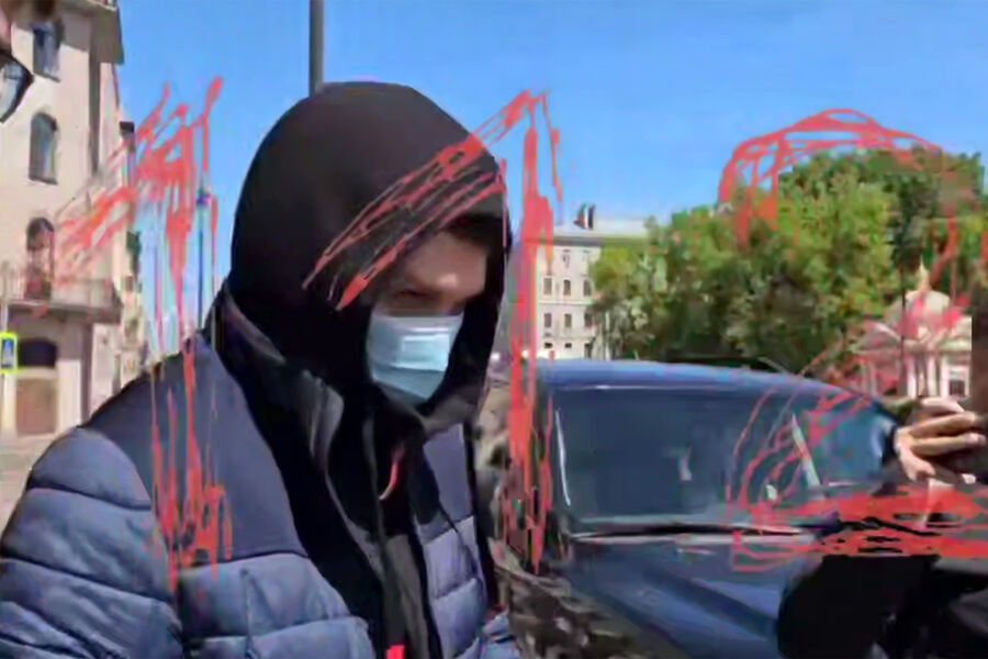 На опубликованных в сети кадрах видно, как мужчину выводят из здания в маске и усаживают в белый легковой автомобиль.