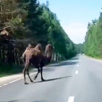 Очевидцы запечатлели инцидент на видео. На кадрах видно, как верблюд идет по проезжей части в месте, необорудованном для пешеходов. Кроме того, как только автомобиль ускоряется, животное начинает бежать.