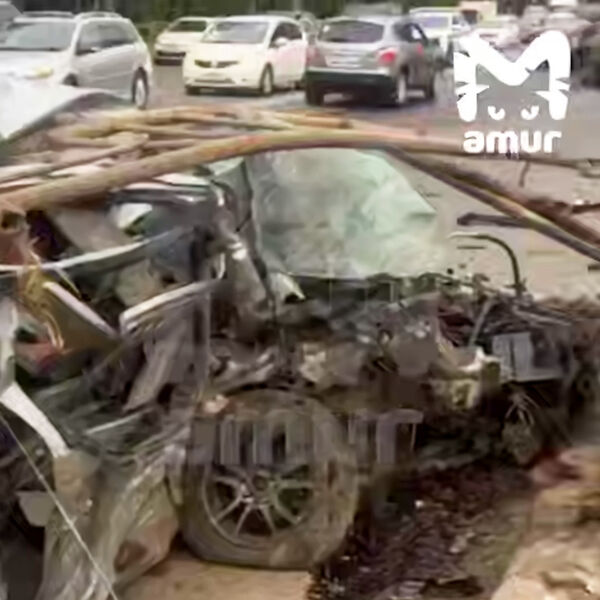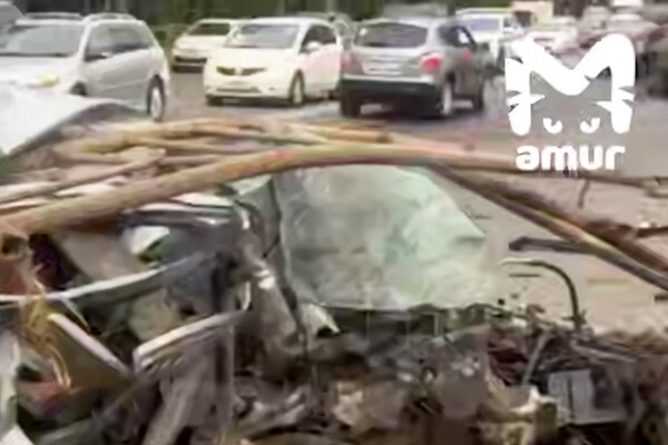 Mash: момент ДТП в Хабаровске, где водителю снесло часть черепа, попал на видео