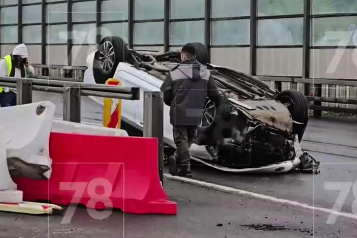 В Санкт-Петербурге перевернутый легковой автомобиль затруднил движение транспорта на КАД. Об этом сообщает Telegram-канал «78.Новости».