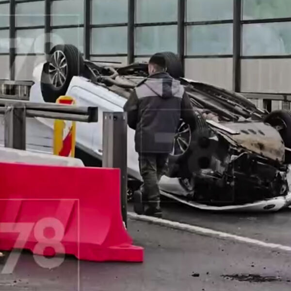 На опубликованных в сети кадрах видно, что перевернутый автомобиль находится на проезжей части.