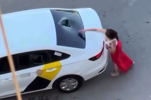 Очевидцы запечатлели инцидент на видео. На кадрах видно, как босая женщина бросает камень в автомобиль и пробивает им стекло. Далее она достает булыжник и разбивает им заднее стекло машины, а после — боковое.