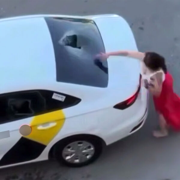 В Казахстане босая женщина булыжником разбила такси, и это попало на видео