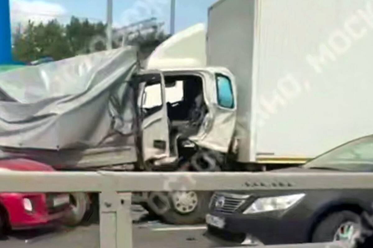 «На кадрах видно, как автомобили, среди которых – три грузовика, подперли друг друга», — говорится в сообщении.