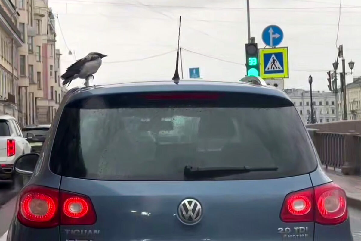 В Петербурге на видео попало, как ворона передвигалась по городу на Volkswagen