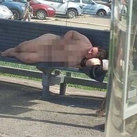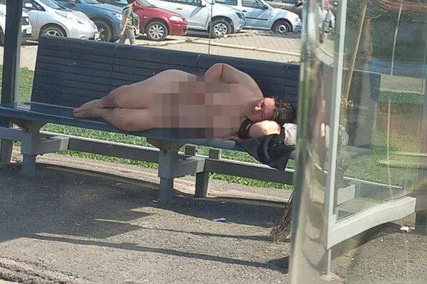 На опубликованных в сети кадрах видно, что полностью голая женщина лежит на лавочке на автобусной остановке.