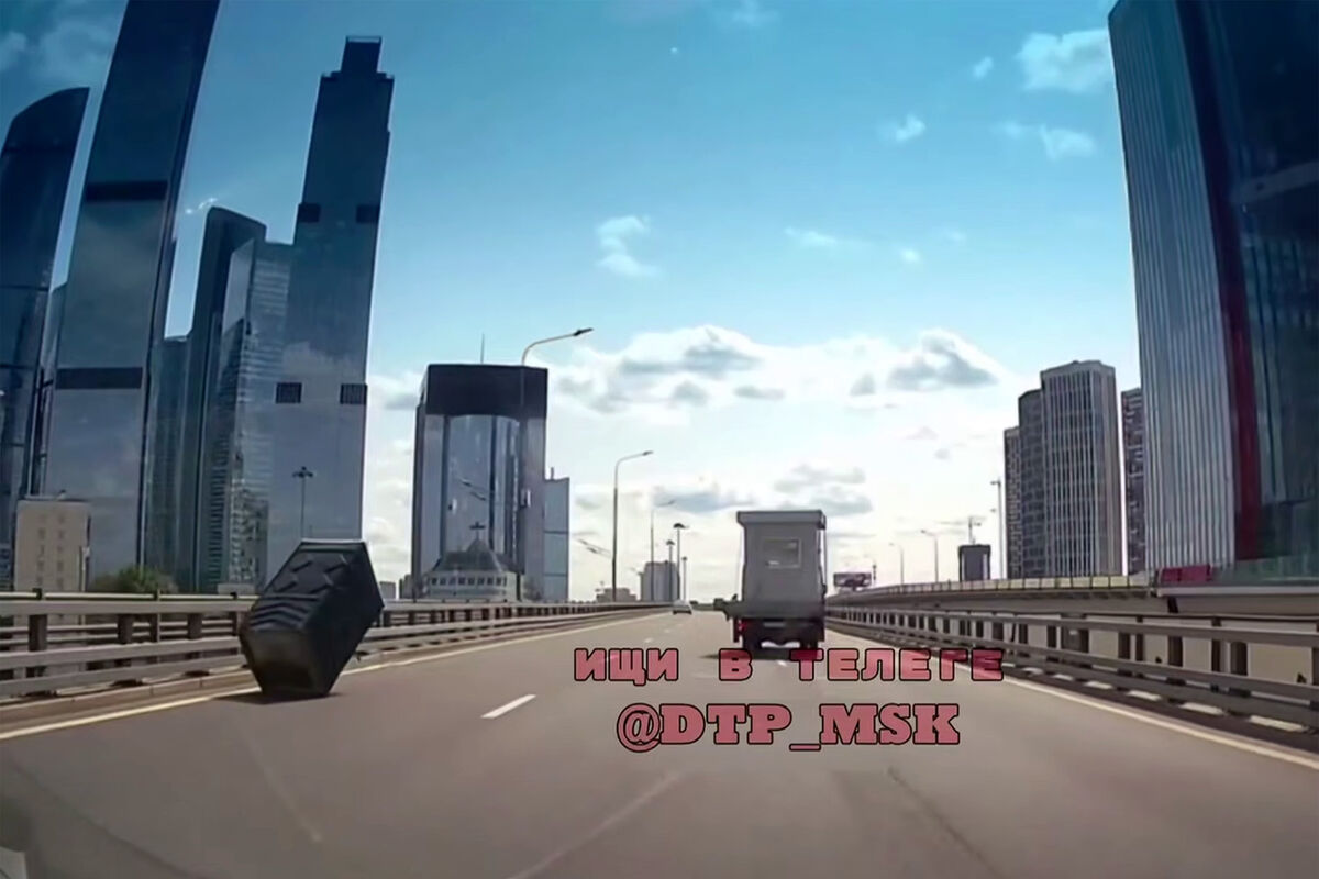 В Москве с грузовика выпала туалетная кабина. Об этом сообщает Telegram-канал «ДТП и ЧП Москва».