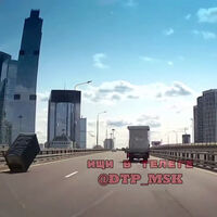 Видеорегистратор автомобиля, водитель которого стал очевидцем произошедшего, запечатлел инцидент. На кадрах видно, как во время движения с грузовика падает туалетная кабина, которая переворачивается на проезжей части.