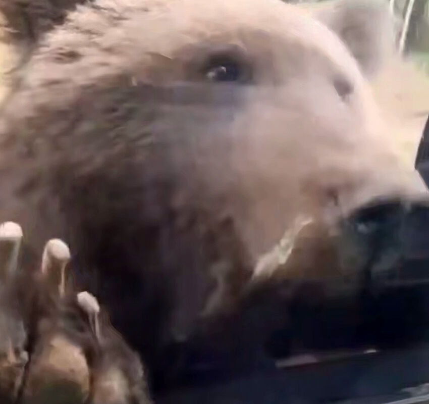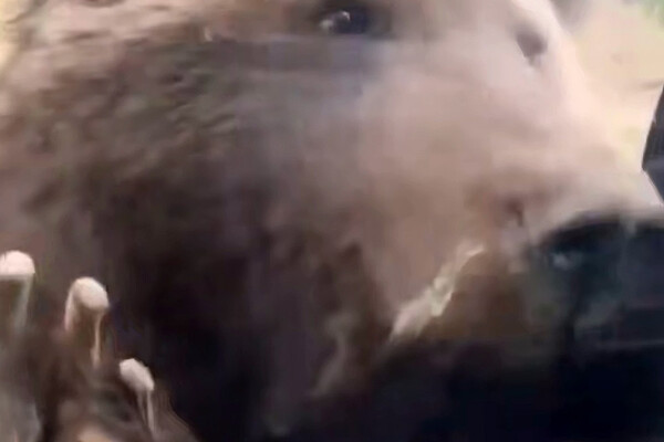 Очевидцы запечатлели инцидент на видео. На кадрах видно, как медведь пытается проникнуть в машину: животное дергает дверь, но водитель уезжает.