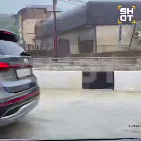 Река вышла из берегов в Сочи и подтопила участок Батумского шоссе, сообщает Telegram-канал SHOT.