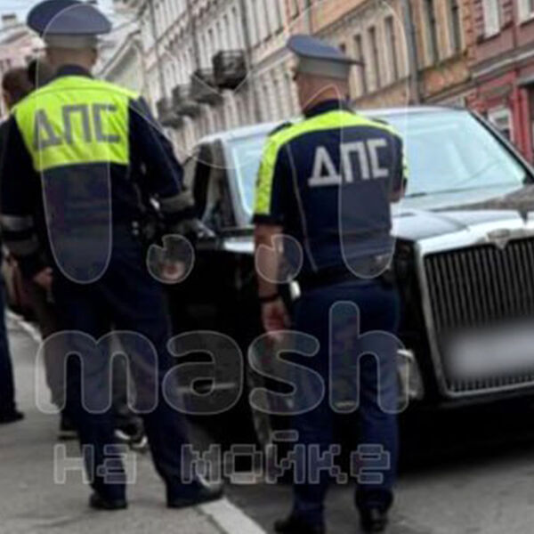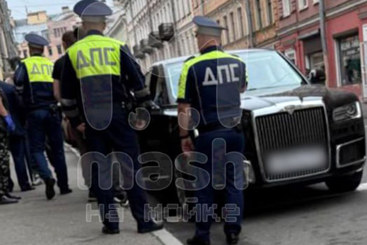В Санкт-Петербурге полицейские осматривают припаркованный лимузин Aurus Senat, сообщает Mash на Мойке.