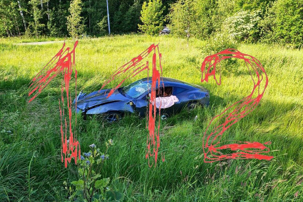 Появилось фото Ferrari, улетевшего в кювет после «деревенского» ДТП