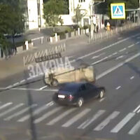 В МВД сообщили, что в момент ДТП за рулем черной машины был 34-летний водитель, а за рулем велосипеда – 67-летний пенсионер. На кадрах видно, как от удара мужчина подлетает вверх.